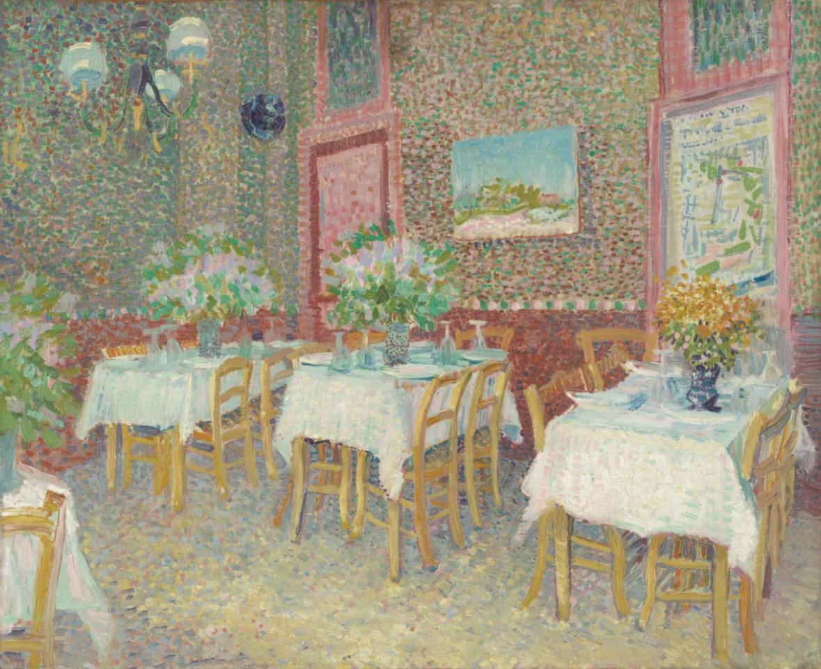 フィンセント・ファン・ゴッホ 《レストランの室内》1887年夏、油彩/カンヴァス、45.5×56cm クレラー=ミュラー美術館 ©Collection Kröller-Müller Museum, Otterlo, the Netherlands. Photography by Rik Klein Gotink