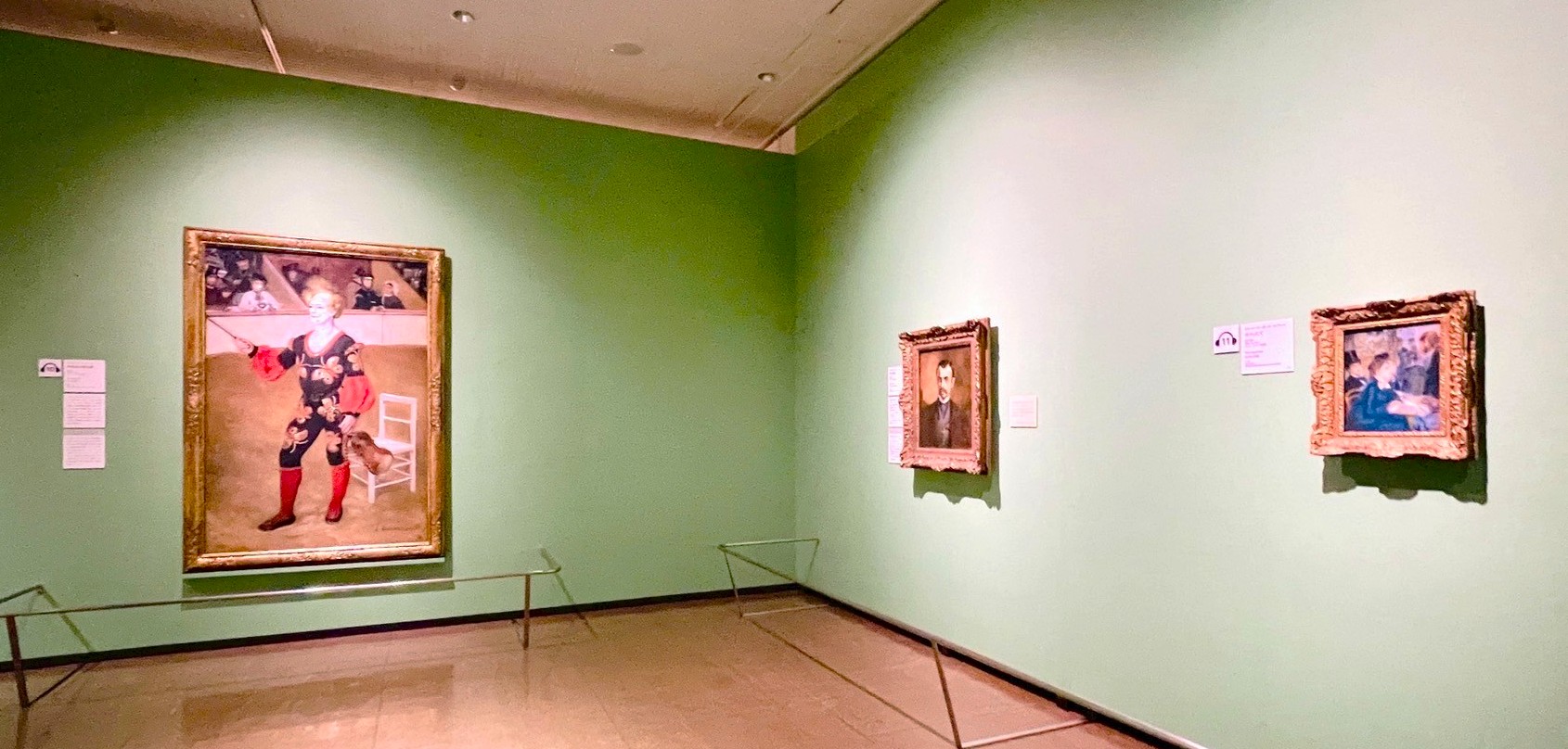 展示風景 左:ピエール=オーギュスト・ルノワール 《音楽家の道化師 》1868年、油彩/カンヴァ、193.5 x 130 cm、Inv. no. KM 100.599, ⒸCollection Kröller-Müller Museum, Otterlo, the Netherlands.