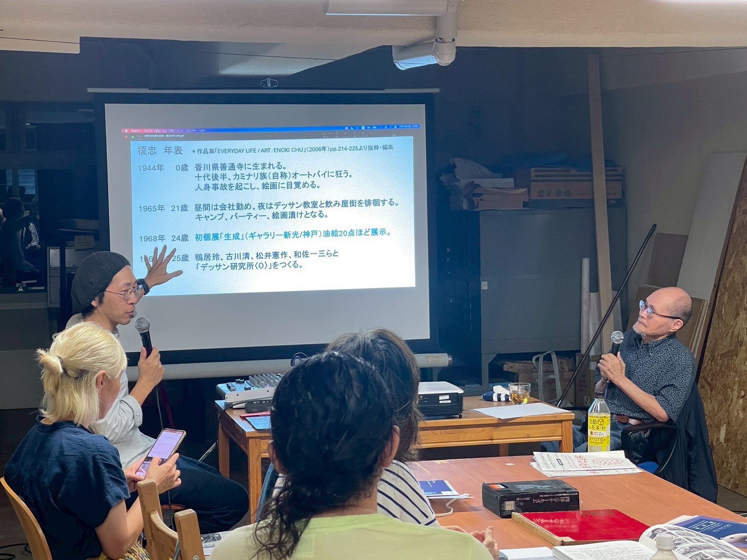 講座の様子。左奥 ARTS STUDYディレクター山下和也氏、右 現代美術家 榎忠氏