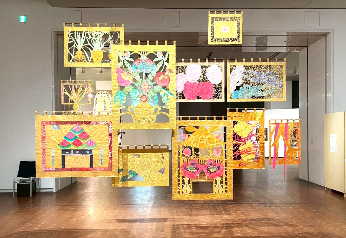 また、切り紙の手法を用いて美術史の周縁に追いやられた女性表現者たちと仮想の対話を試みる「はいけいちえこさま」シリーズ(例えば高村智恵子との対話)や、新作インスタレーション《目の前に開ける明るい新しい道》は、既存の価値観や歴史観を鮮やかに転換しようとする、批評的な実践である。