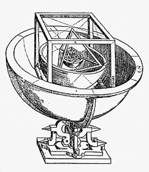 Johannes Kepler, Mysterium Cosmographicum, Tübingen, 1596 (Wikimedia Commons, https://commons.wikimedia.org/wiki/File:Kepler_Mysterium_Platonic_Solids.jpg)