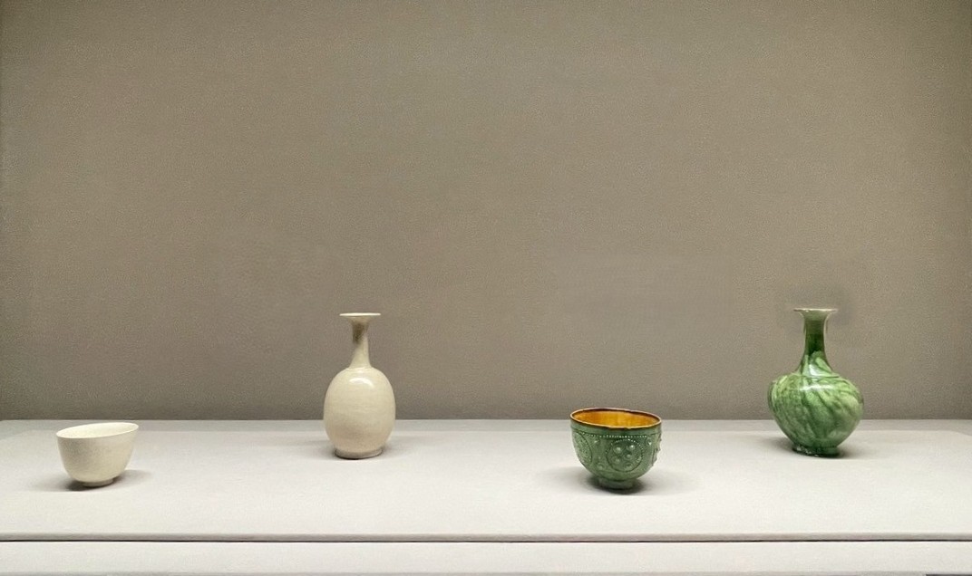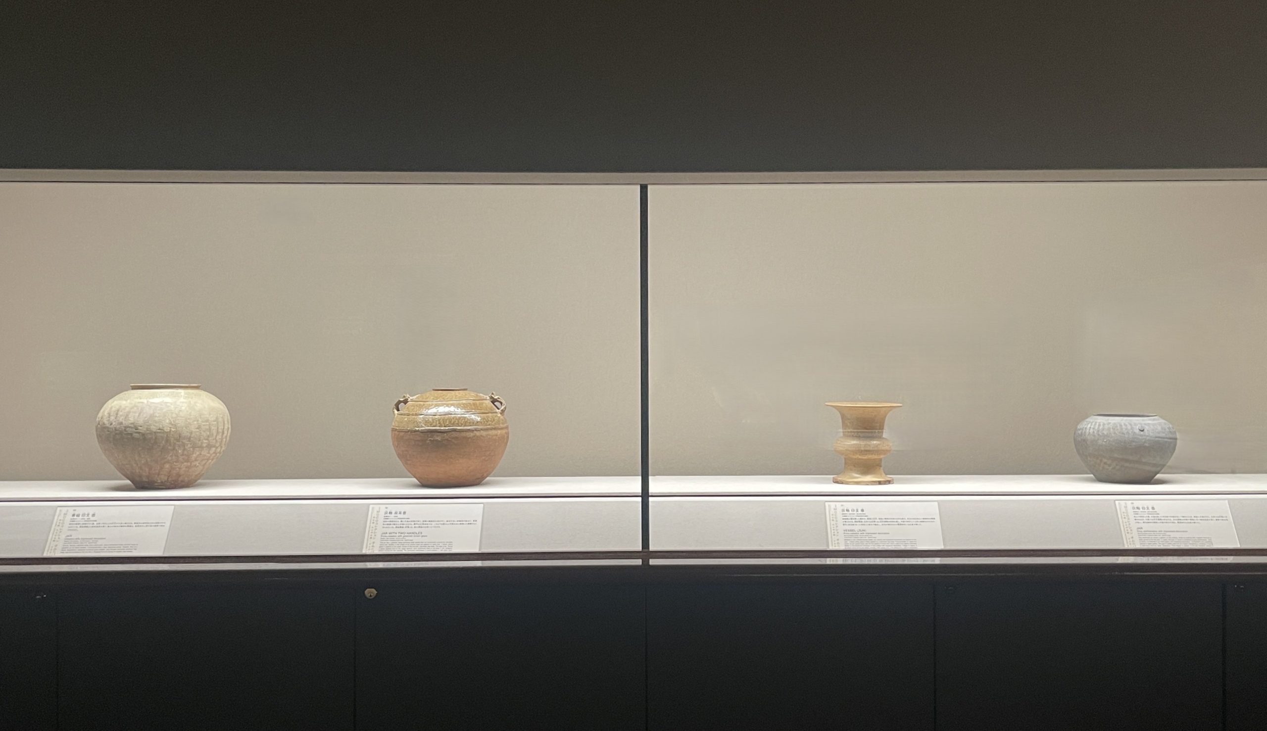 「千秋精粋」と名付けられたこのセクションでは、新石器時代の土器から、宋代の洗練された磁器、そして清代の技巧を凝らした逸品まで、約五千年にわたる中国陶磁の変遷を概観することができる。土の質感を生かした原始的な力強さと、後の時代に見られる極限まで磨き上げられたエレガンスが同居する展示空間は、陶磁器が人類の文明とともにいかに進化し、洗練を遂げてきたかうかがえる。