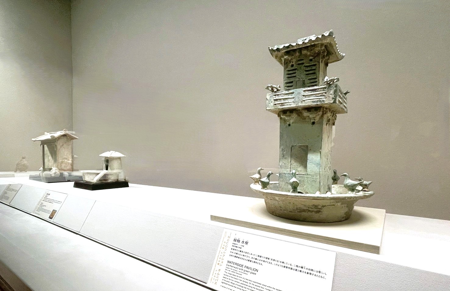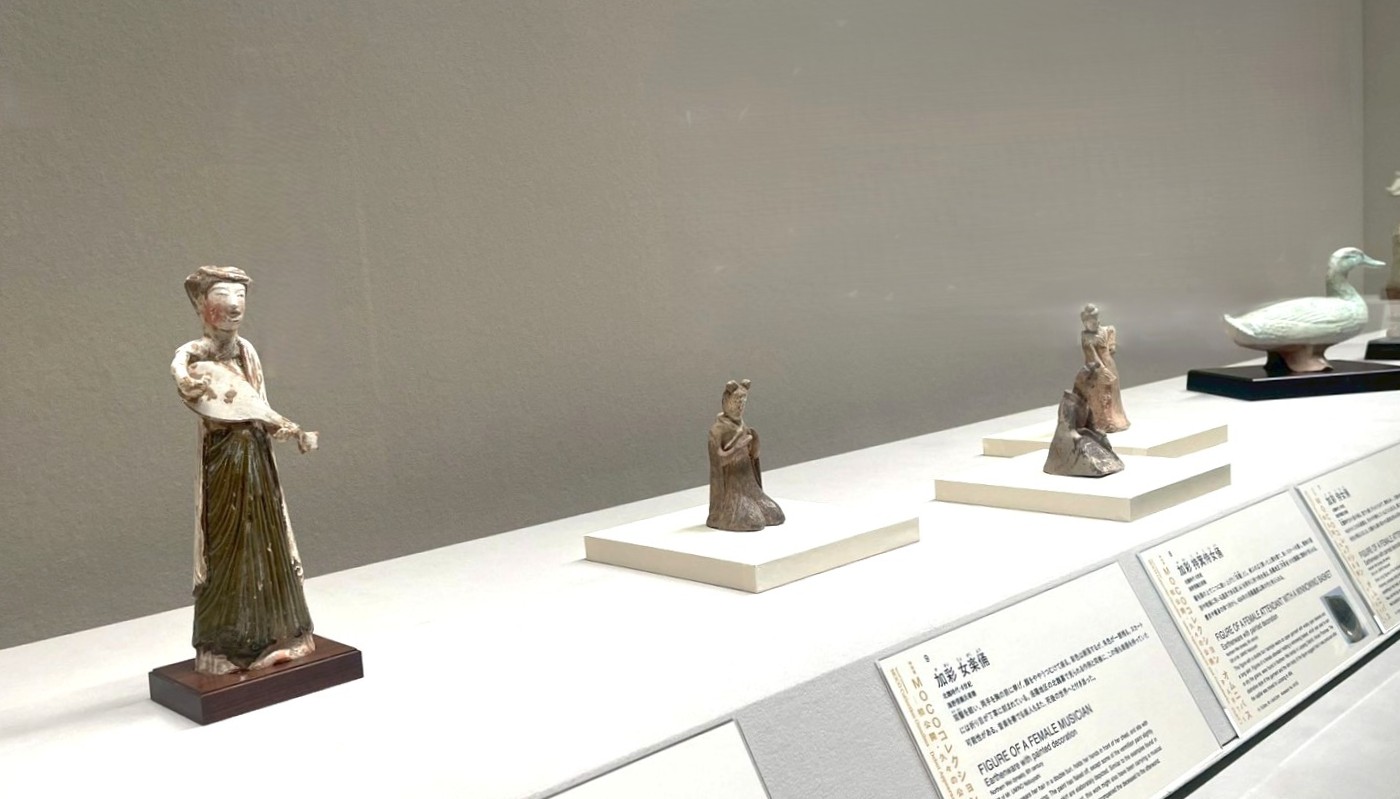 展示の冒頭を飾る「海野信義コレクション」は、中国の漢代から唐代にかけての「明器(めいき)」を中心とした、精神性の高いセクションである。明器とは、古代中国で死者のあの世での生活を支えるため、生前の生活用品(家財、家屋、動物、人物など)を模して作られ、墓に副葬されたミニチュアの模型や器具の総称のことだ。「明器游境」というテーマが示す通り、ここには古代中国の人々が抱いた死生観が凝縮されている。