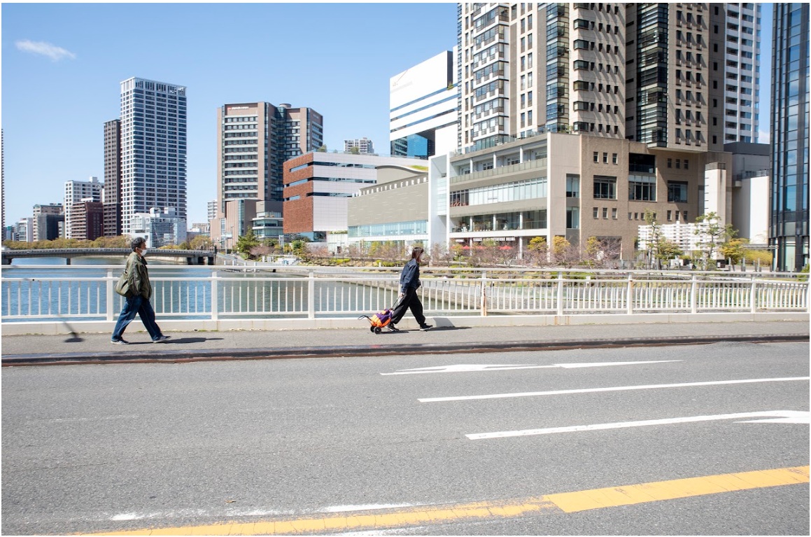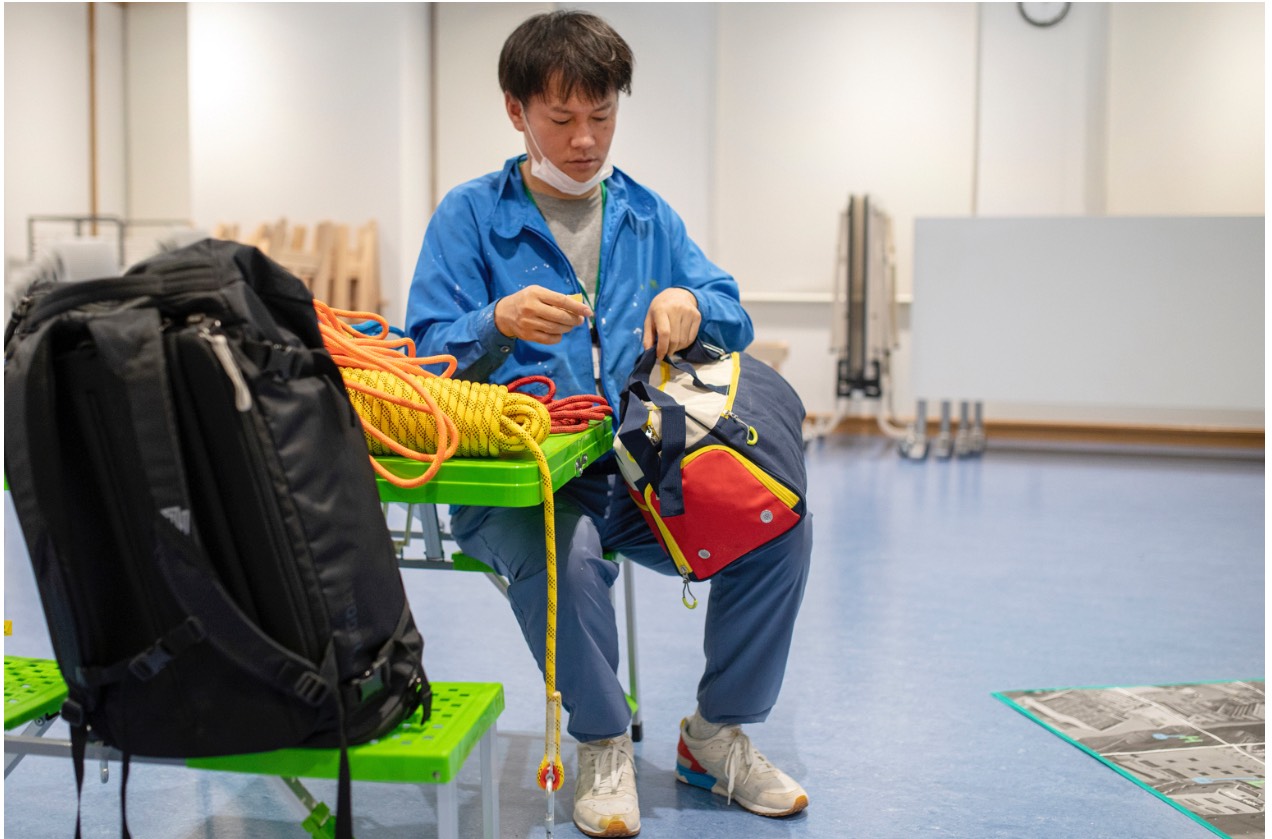 Decorator Crab – Make Space, Use Space《デコレータークラブ—新しい観客》, 2022 Collaboration between the group exhibition Range of the Senses: What It Means to “Experience” Today (The National Museum of Art, Osaka) and the solo exhibition Decorator Crab – Make Space, Use Space (Hyogo Prefectural Museum of Art).Dimensions variable. Sports bag, hand truck Photo: © Takehiro Iikawa, courtesy of the artist Studio Takehiro Iikawa(HP)より