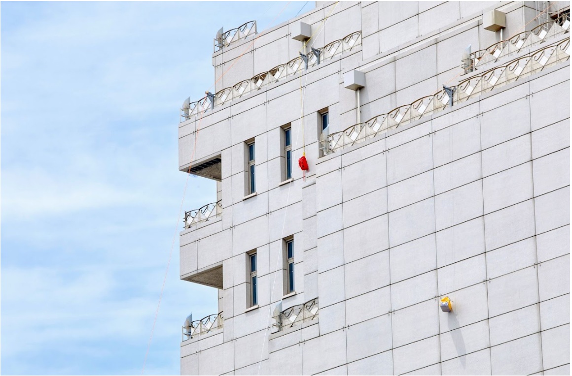 Decorator Crab – Probable Perspective《デコレータークラブ—遠近の設計図》, 2020 Installation view: “KENPOKU Art Project 2019″ Takahagi Junior High School, Ibaraki, Japan Dimensions variable. Belt Photo: © Takafumi Sakanaka, courtesy of the artist Studio Takehiro Iikawa(HP)より