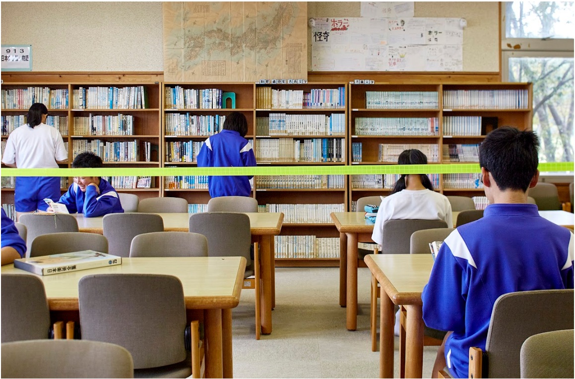 Decorator Crab – Probable Perspective《デコレータークラブ—遠近の設計図》, 2020 Installation view: “KENPOKU Art Project 2019″ Takahagi Junior High School, Ibaraki, Japan Dimensions variable. Belt Photo: © Takehiro Iikawa, courtesy of the artist Studio Takehiro Iikawa(HP)より