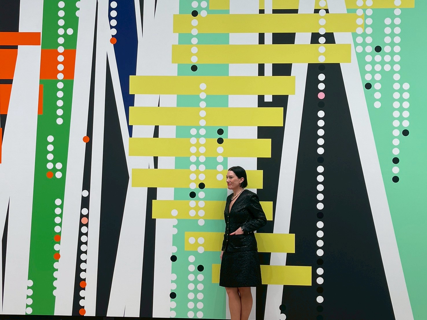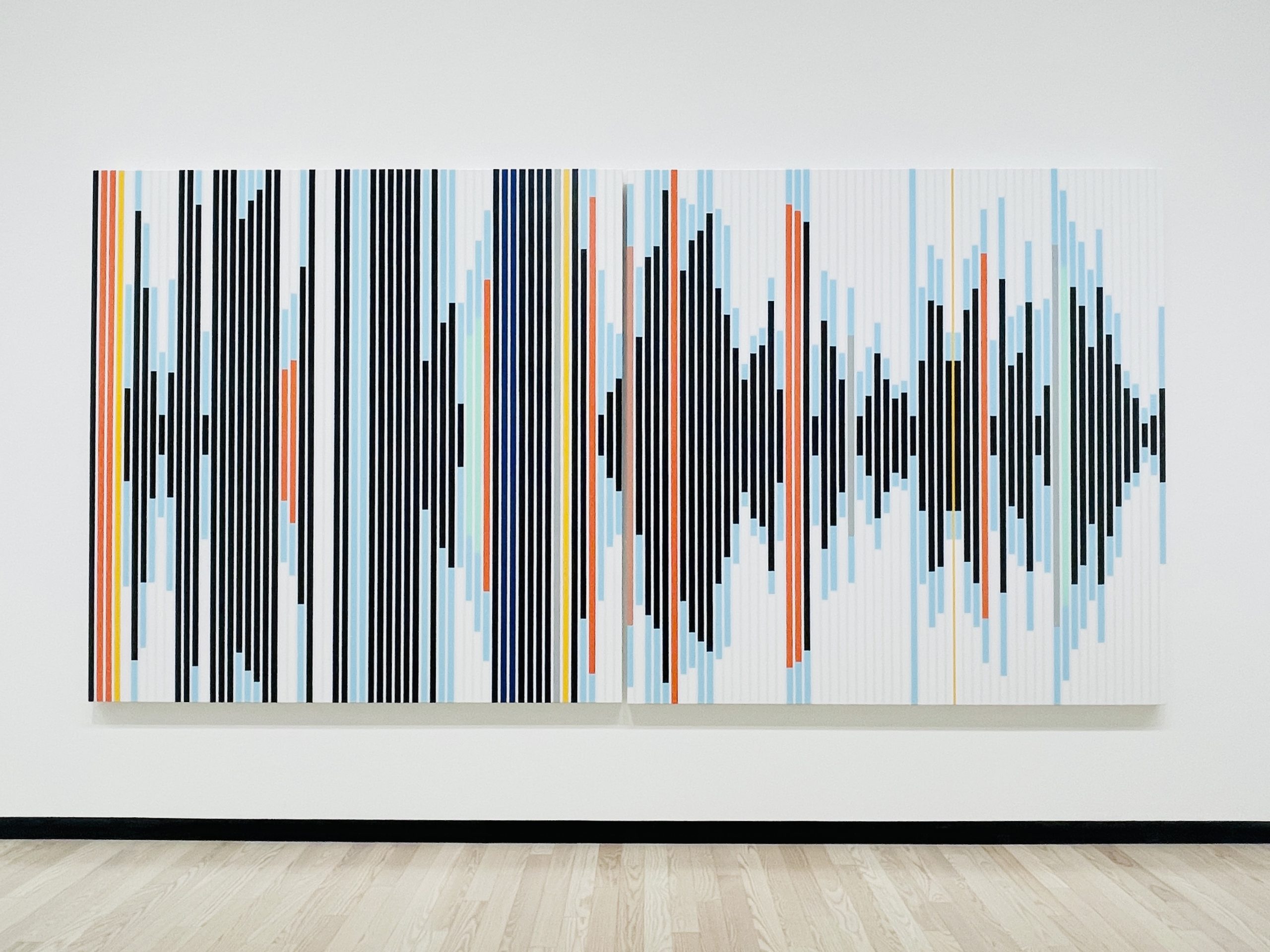 サラ‧モリス 《社会は抽象的であり、⽂化は具体的である [サウンドグラフ]》 2018年 家庭⽤グロス塗料 カンヴァス 214 x 428 cm ⼤阪中之島美術館 ©Sarah Morris
