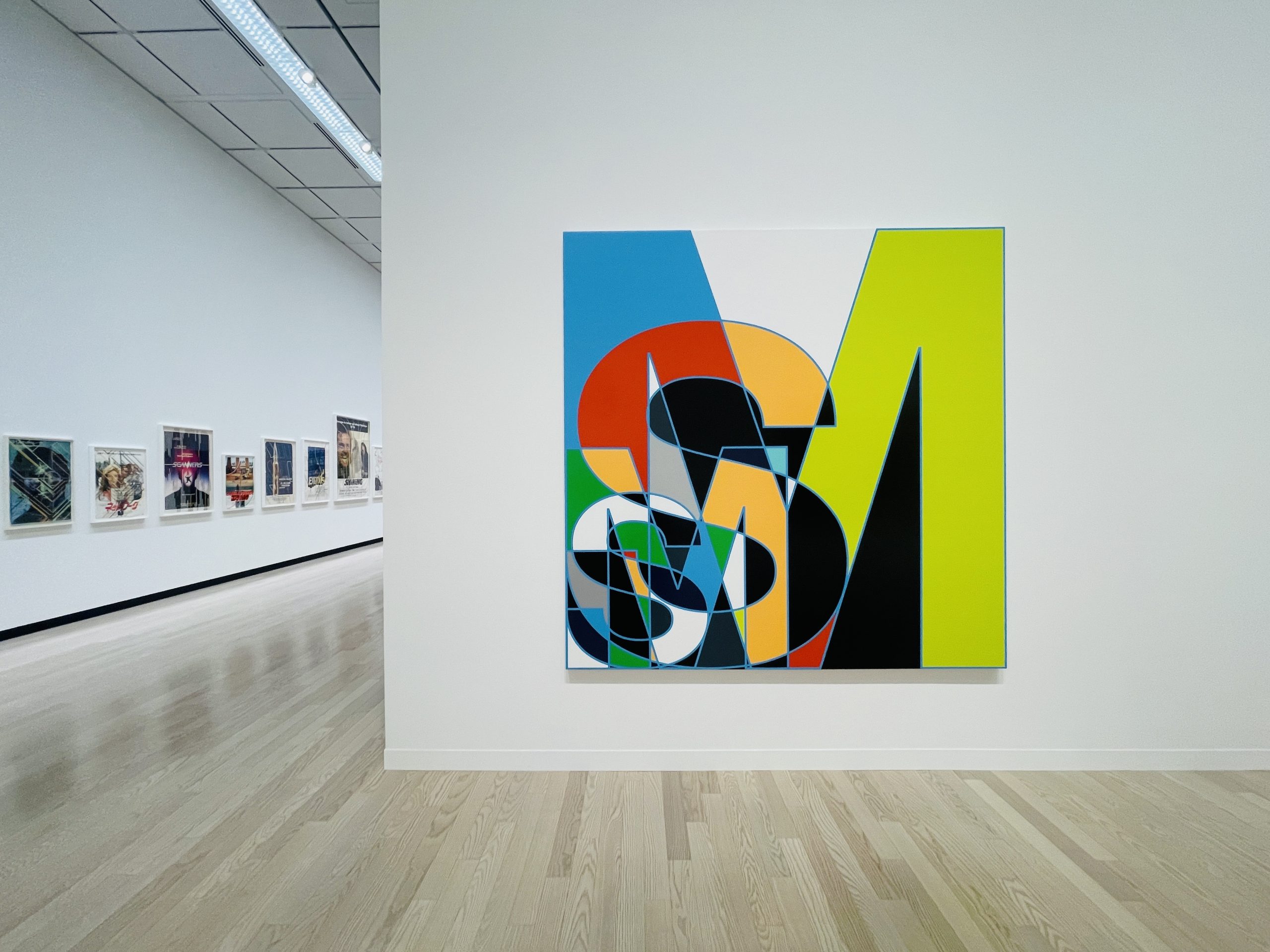 展示風景 左上:《猛⽝注意》1994 年 アクリル、カンヴァス 122 x 170 cm 個⼈蔵 © Sarah Morris, Photo: Tom Powel Imaging