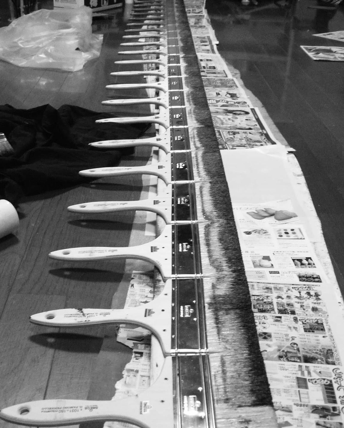 自作の幅2メートルの刷毛 Akihito takuma instagramより